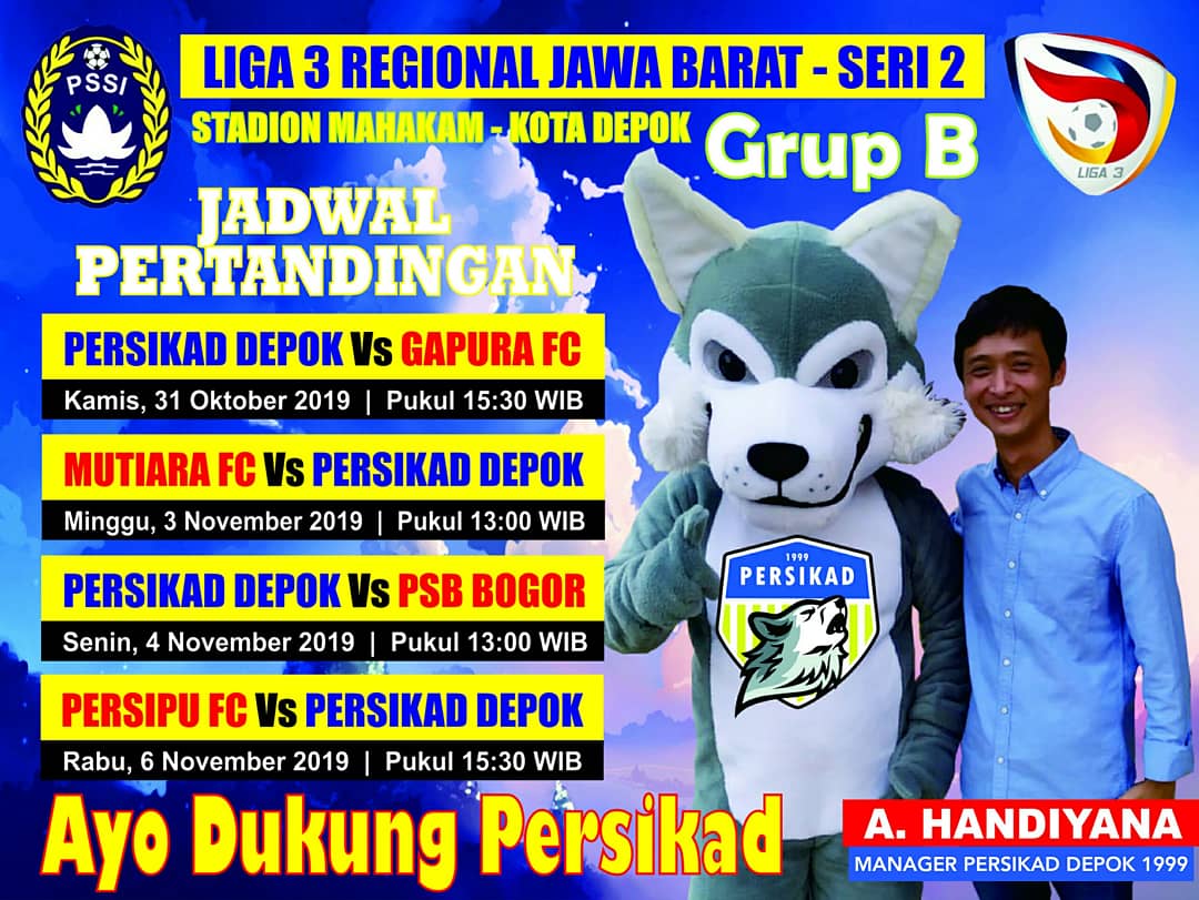 Seperti diketahui, Persikad Depok 1999 akan memulai perjuangan di Liga 3 Regional Jawa Barat Seri 2 yang akan digelar di Stadion Mahakam, 31 Oktober – 7 November 2019. Laga pertama Persikad Depok sendiri akan dilaksanakan 31 Oktober 2019 Pukul 15:30 WIB melawan Gapura FC. (CPB/DepokNet)