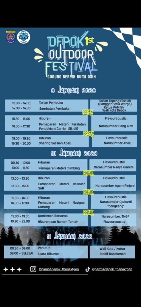 “Persiapan kegiatan ini lebih kurang 2 bulan dengan partisipasi dari kami Pencinta Alam Margonda 54 (PAM 54) Korpri kota Depok kolaborasi dengan Mapala Universitas Indonesia, Mapala Universitas Gunadarma, Mapala Universitas PNJ dan Mapala Universitas Pamulang,” ujar Ringgi (8/1/2026).