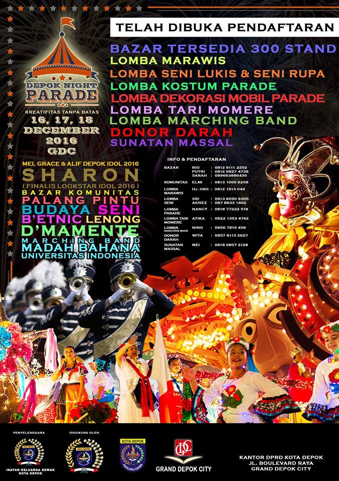 Berikut beberapa kegiatan dan acara dalam DEPOK NIGHT PARADE 2016