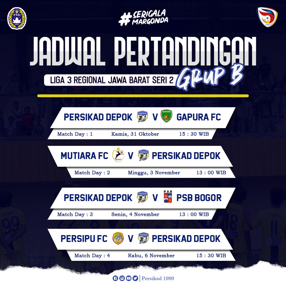 Bergabung di Grup B bersama Gapura FC, Mutiara FC, PSB Bogor, dan Persipu FC, laga perdana Persikad Depok akan digelar melawan Gapura FC, Kamis, 31 Oktober 2019 Pukul 15:30 WIB.