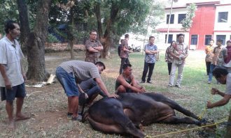 DEPOKNET – Direktur Utama (Dirut) Perusahaan Daerah Air Minum (PDAM) Tirta Asasta Kota Depok, H. M. Olik Abdul Holik, menyaksikan langsung proses penyembelihan hewan qurban di kantor pusat PDAM Tirta Asasta kota Depok, Jalan Legong Raya, Sukmajaya Depok, Kamis (23/08).