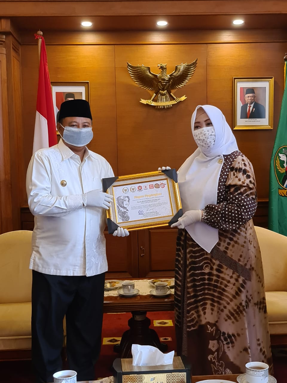 Kang UU Ruzhanul Ulum Wagub Jawa Barat mengucapkan terima kasih kepada Ibu Fahira Idris yang jauh-jauh dari Jakarta memperhatikan kami yang nun jauh disana di Jawa Barat atas Piagam Penghargaan ini,