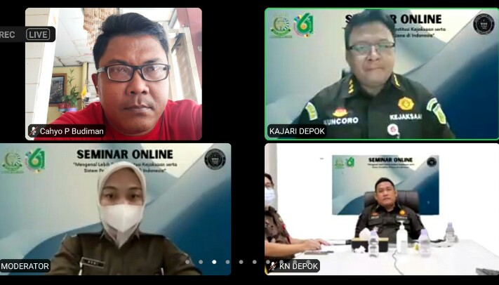 Seminar Online yang dibuka langsung oleh Kepala Kejaksaan Negeri (Kajari) kota Depok, Sri Kuncoro, SH, M.Si berlangsung sejak pukul 10.00 sampai dengan 12.30 WIB.