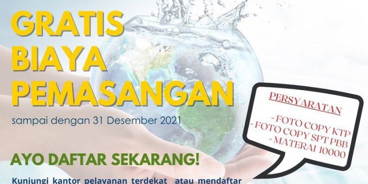 DEPOKNET – Dalam rangka menjaga konservasi air tanah, PDAM Tirta Asasta Kota Depok kembali melanjutkan program gratis biaya penyambungan sampai dengan 31 Desember 2021.