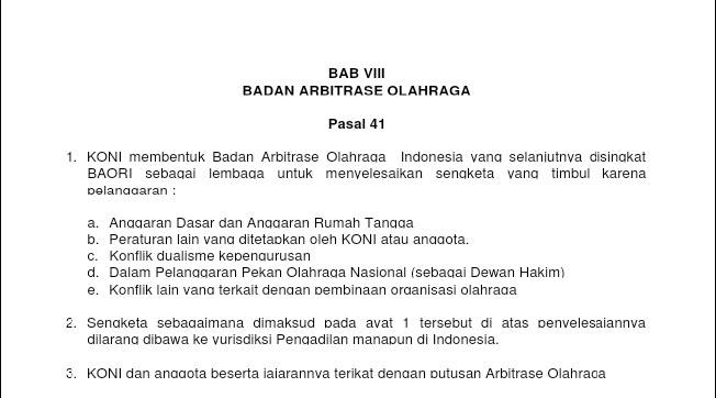 “Jadi jika ada sengketa berupa pelanggaran AD/ART seperti yang digugat oleh ketiga pengcab terhadap pelaksanaan Musorkot KONI Depok, penyelesaiannya dilarang dibawa ke yurisdiksi Pengadilan manapun di Indonesia termasuk Pengadilan Negeri Depok, itu tersebut jelas di Pasal 41 ayat 2 AD/ART KONI,” pungkasnya