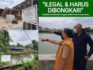 “Nah itukan bangunannya sudah menjorok ke area setu, diurug pula dan dibuat bangunan permanen, yang jelas itu ilegal dalam perspektif kewenangan pemprov Jabar terhadap setu, jadi harus dibongkar,” tegas Hasbullah Rahmad, Selasa (16/03)