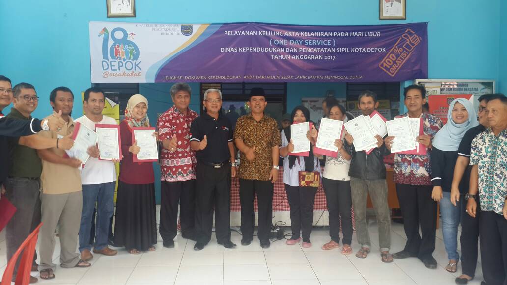 DEPOKNET – Pemerintah kota Depok melalui Dinas Kependudukan dan Pencatatan Sipil (Disdukcapil) kota Depok kembali menggelar ONE DAY SERVICE untuk pelayanan pembuatan Akta Kelahiran.