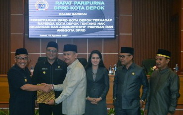 DEPOKNET – Dewan Perwakilan Rakyat Daerah (DPRD) Kota Depok akhirnya menyetujui rancangan peraturan daerah (Raperda) Kota Depok tentang hak keuangan dan admistratif pimpinan dan anggota DPRD. Penandatanganan berita acara persetujuan Raperda ini disaksikan langsung oleh Walikota Depok dan Wakil Walikota Depok serta kepala OPD dalam rapat paripurna yang digelar kemarin, Jumat (18/08/2017)