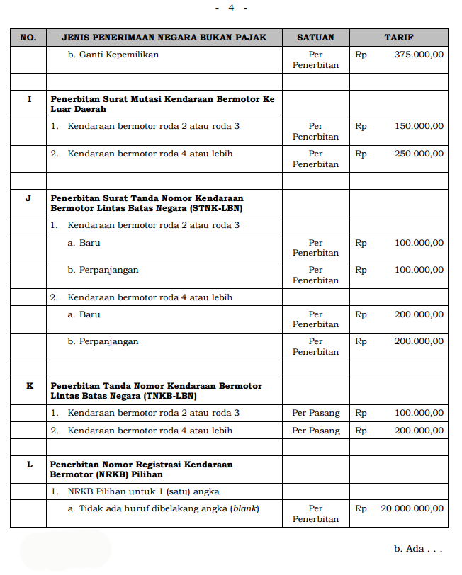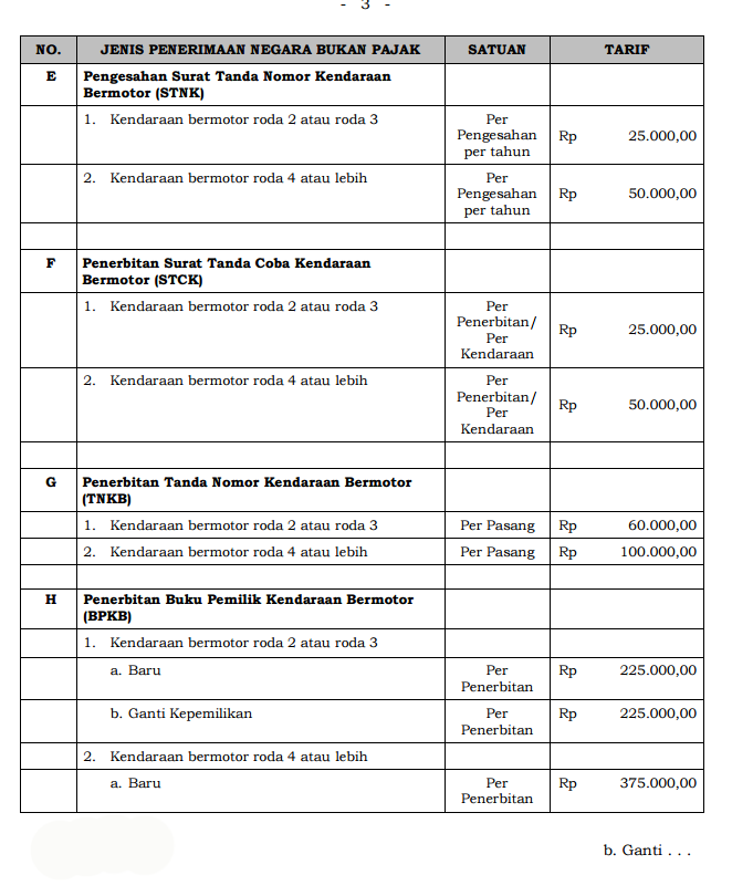 Atas usulan dari Badan Pemeriksa Keuangan Republik Indonesia.(BPK RI) dan Badan Anggaran DPR yang melihat temuan di lapangan adanya kenaikan bahan material untuk STNK dan BPKB, maka Pemerintah Pusat telah mengeluarkan Peraturan Pemerintah (PP) Nomor 60 Tahun 2016 Tentang Jenis dan Tarif atas Jenis Penerimaan Negara Bukan Pajak (PNBP) yang berlaku pada Kepolisian Negara Republik Indonesia.