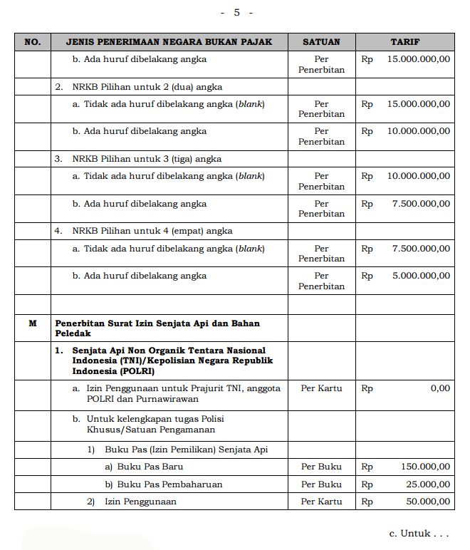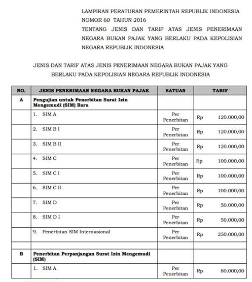 DEPOKNET – Berlaku sejak 6 Januari 2017, jenis Penerimaan Negara Bukan Pajak (PNBP) yang berlaku pada Kepolisian Negara Republik Indonesia dinaikkan tarifnya.