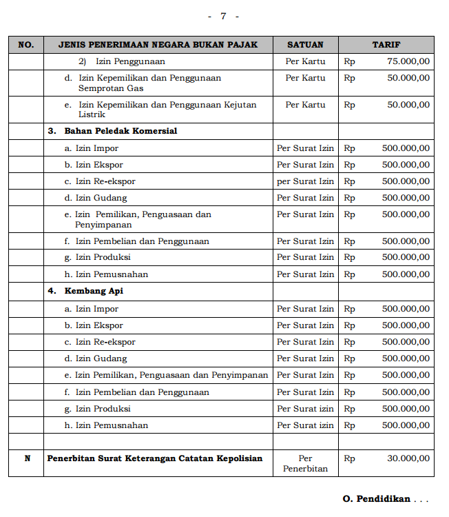 Dalam PP ini bukan hanya pengurusan surat kendaraan bermotor yang mengalami kenaikan tarif, tapi seluruh jenis dan tarif PNBP di instansi Polri, salah satunya pengurusan Surat Keterangan Catatan Kepolisian (SKCK) yang awalnya Rp 10.000,- menjadi Rp 30.000,-