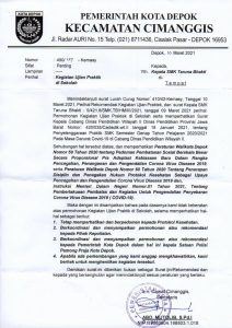 DEPOKNET – Kecamatan Cimanggis kota Depok akhirnya memberikan jawaban tertulis terkait adanya permohonan penerapan Pembelajaran Tatap Muka (PTM) di SMK Taruna Bhakti yang ada di kelurahan Curug kecamatan Cimanggis.