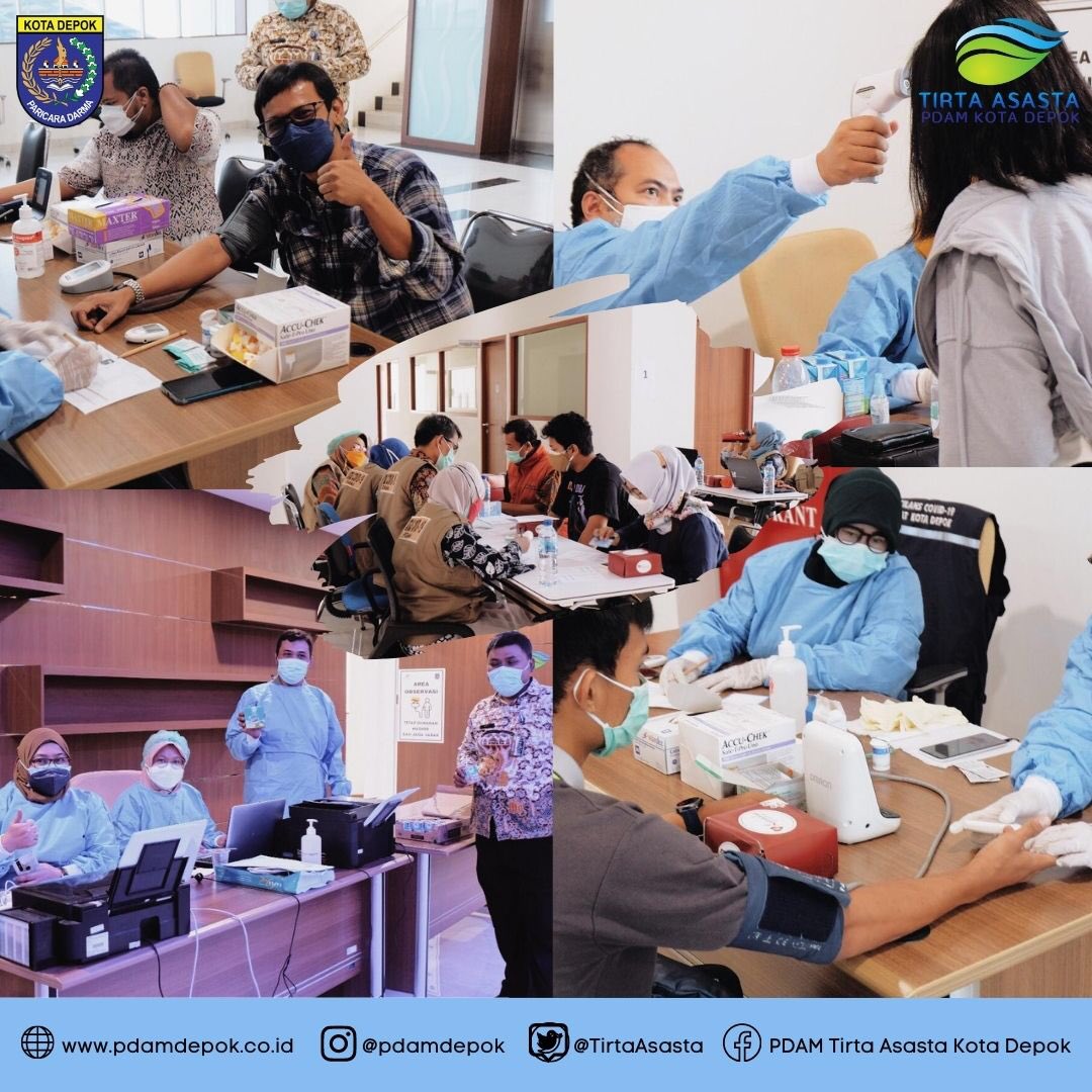 Bertempat di Kantor Pusat PDAM Tirta Asasta kota Depok, Jalan Legong Raya Kelurahan Mekarjaya Kecamatan Sukmajaya, sebanyak 21 tenaga kesehatan dari Dinkes kota Depok melakukan vaksinasi pada karyawan dan karyawati PDAM Depok.