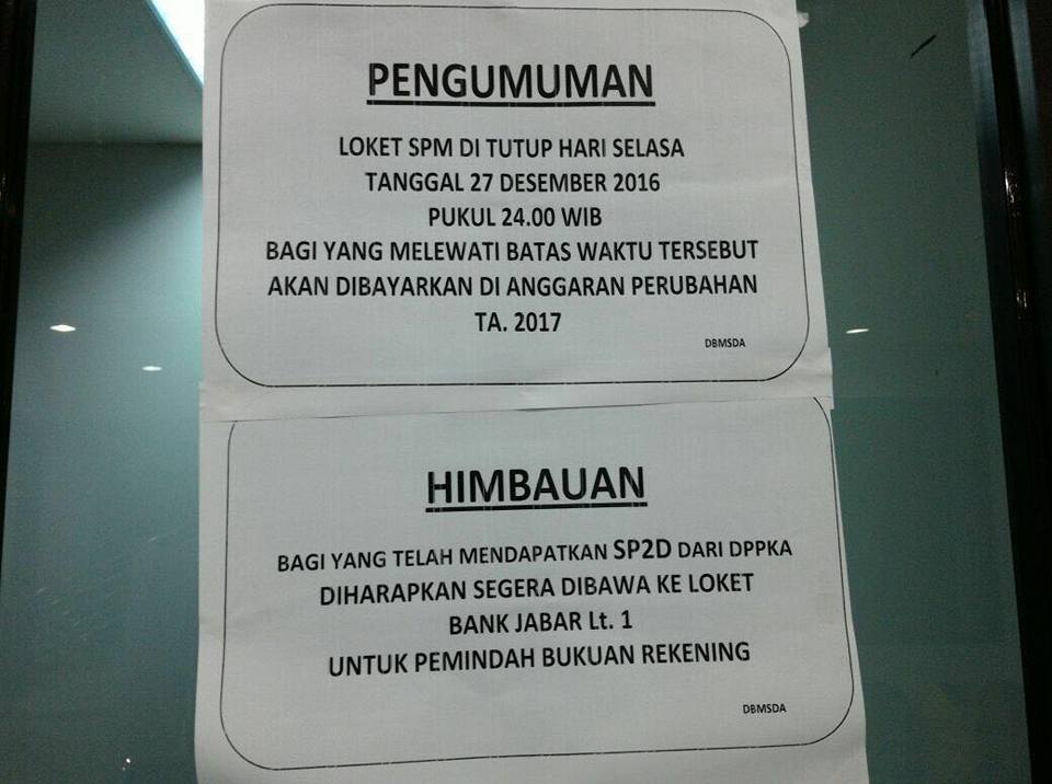 Pasalnya, Pemkot Depok melalui dinas terkait awalnya sudah mengumumkan, loket pengajuan SPM ditutup Rabu, 28 Desember 2016, namun tanpa alasan yang jelas tiba-tiba diubah menjadi Selasa, 27 Desember 2016, Pukul 24:00 WIB. (Baca : http://www.depoknet.com/28-desember-batas-akhir-pengajuan-berkas-spm-dan-penerbitan-sp2d-kota-depok/ )