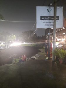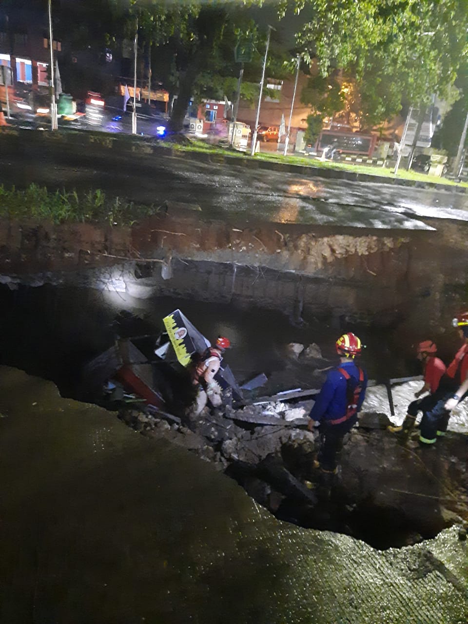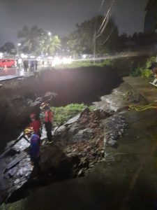 Yang parahnya, longsor yang terjadi sekitar pukul 20:30 WIB itu, membuat hilang ruas jalan yang dijadikan lahan parkir di depan salah satu Cafe di kawasan itu yang letaknya berada tepat di seberang kantor dinas pemadam kebakaran dan penyelamatan kota Depok.