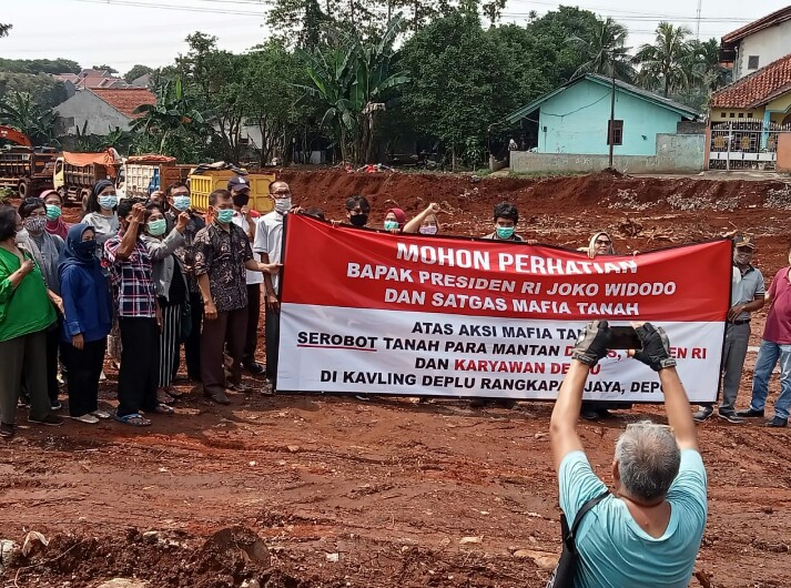 “Jadi dasarnya mereka (Kopelindo, red) menggarap tanah kavling Deplu, bukan sebagai pemilik. Ini jelas ada upaya penyerobotan tanah, bahkan kami menduga ada aksi mafia tanah yang bermain disini,” ungkap Dedi, salah satu koordinator warga aksi.