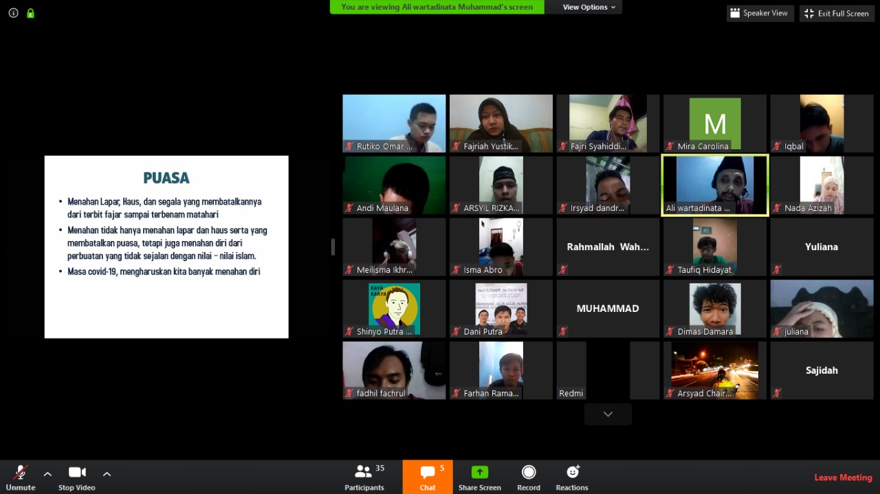 Syahid menambahkan ramadhan di tengah pandemi akan menjadi ramadhan yang harus kita lalui tanpa kesempatan bersua dalam forum. Namun, semangat silahturahmi tidak boleh padam, semangat beribadah pun harus tetap ditingkatkan, mencari ilmu harus tetap dimasifkan, dan berkarya dirumah saja dengan semangat harus tetap dilaksanakan