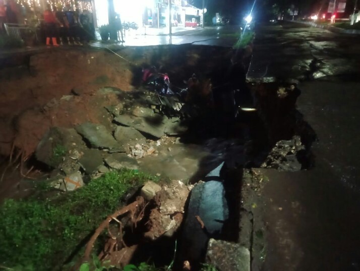 “Jadi saluran kali itu dibelok, aslinya dari depan Mako Damkar lurus melewati ruko atau depan Cafe yang sekarang longsor dan amblas itu,” ungkapnya