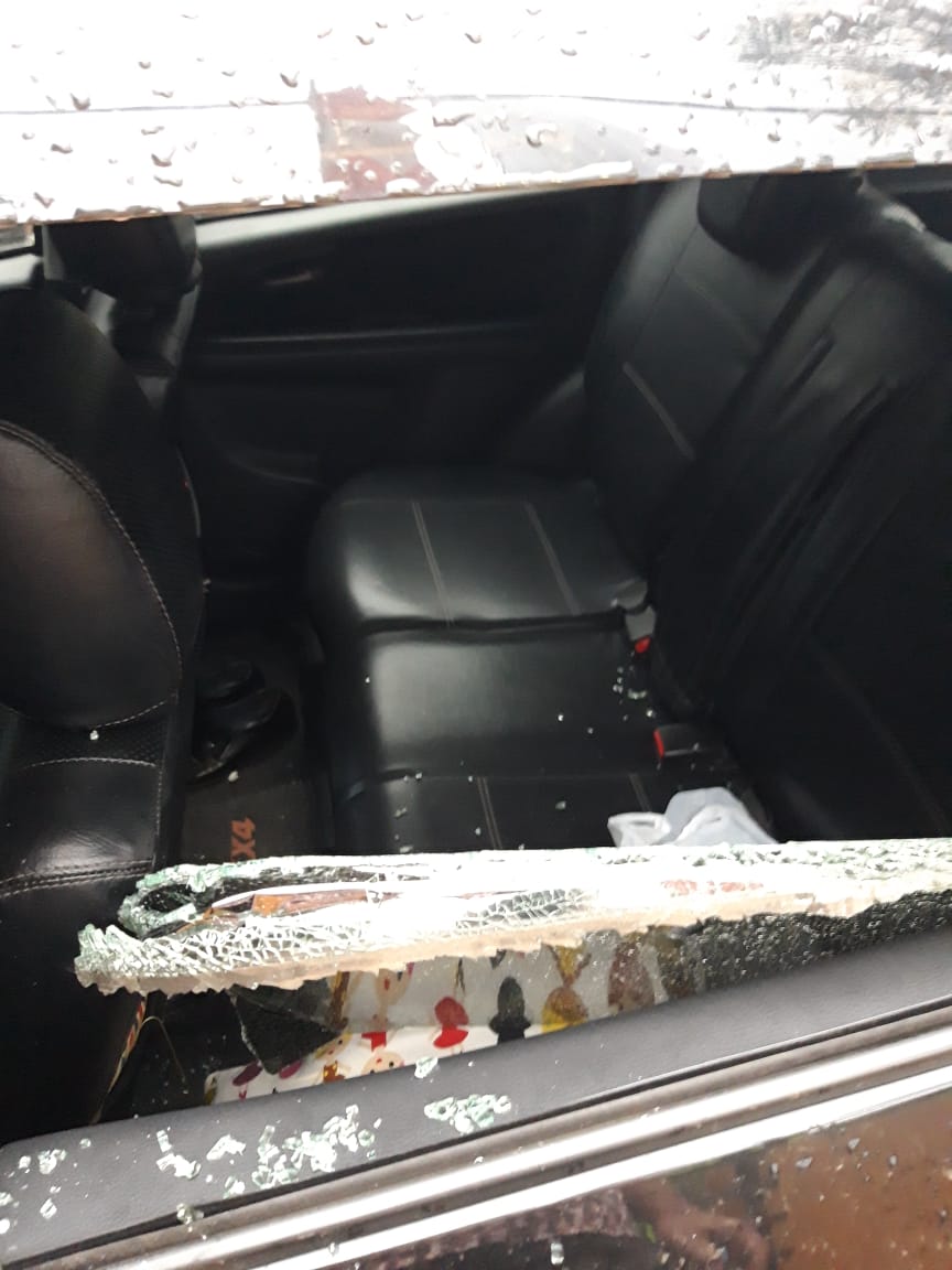 Namun naas saat hendak pulang, dirinya mendapatkan kaca mobil bagian kiri belakang mobilnya sudah pecah.