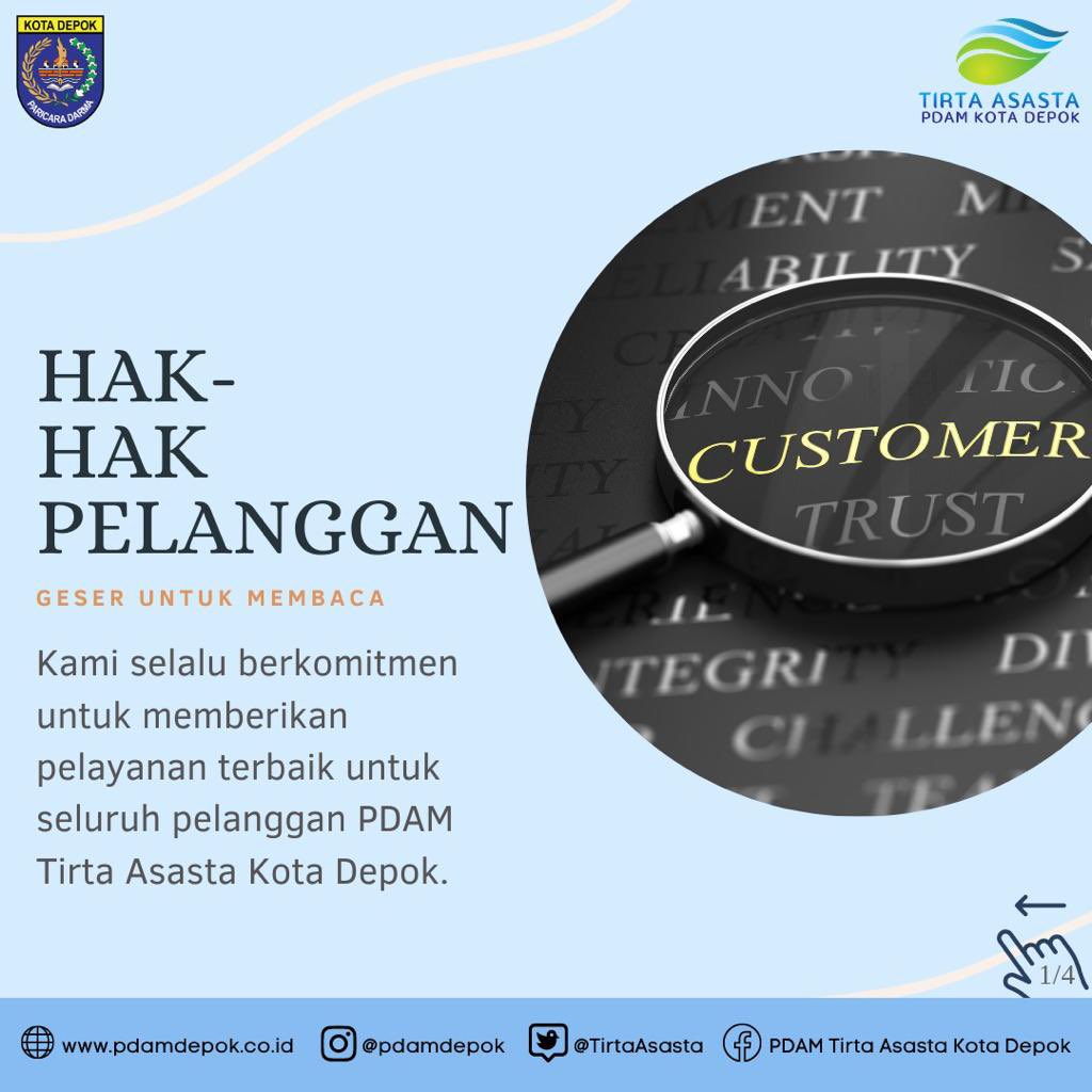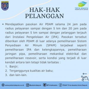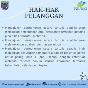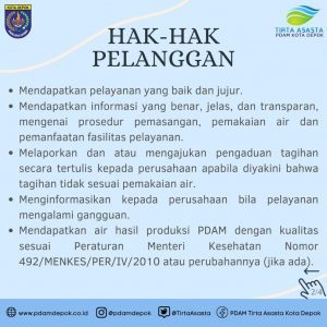 DEPOKNET – Guna membangun komitmen dalam memberikan pelayanan terbaik kepada seluruh pelanggan, PDAM Tirta Asasta kota Depok terus mencoba mengingatkan tentang hak dan kewajiban bagi pelanggan.
