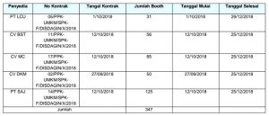 Hal ini menunjukkan bahwa terdapat potensi denda keterlambatan yang belum dikenakan atas keterlambatan penerimaan booth UMKM di lokasi masing-masing yang telah ditetapkan.