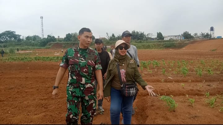 Dandim dan para wartawan Depok juga lakukan peninjauan lahan pertanian serta lakukan pemasangan ajir sebagai penyangga tanaman Koro Pedang. (Hsn)