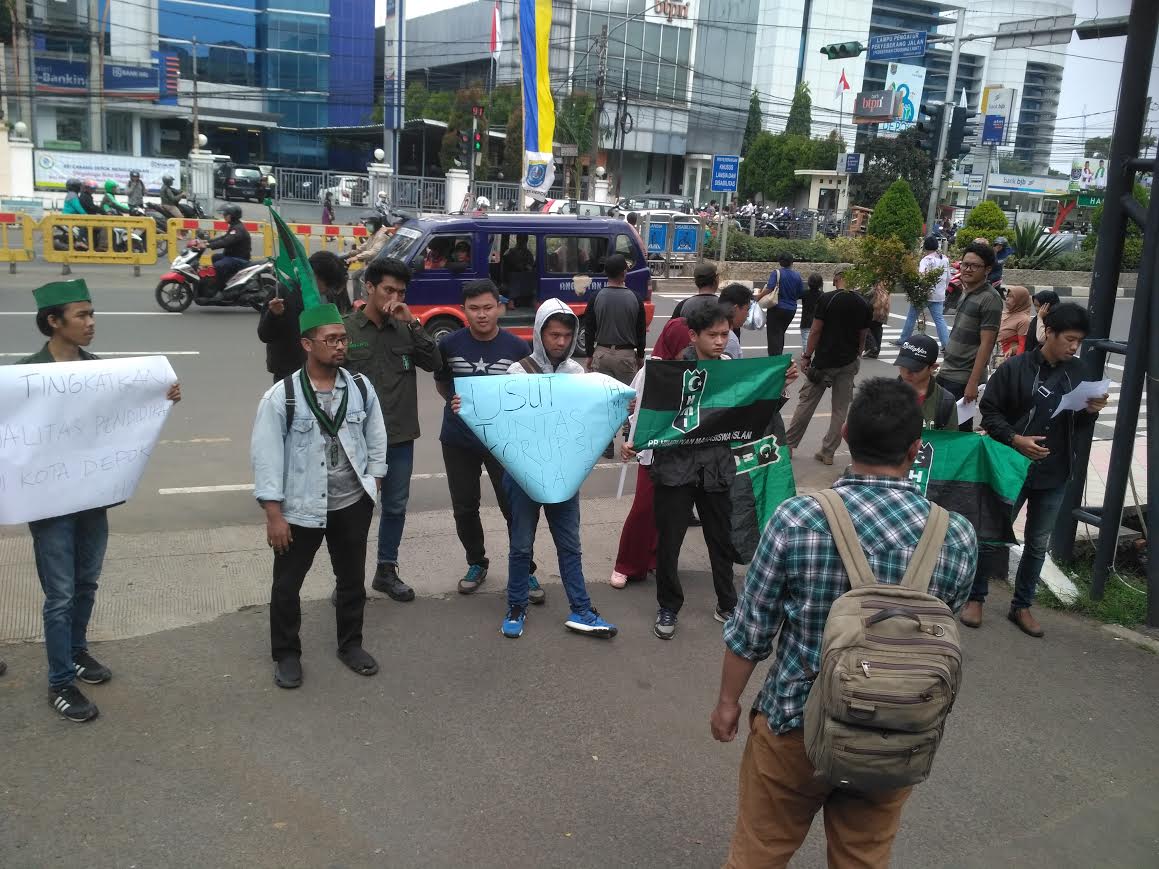 DEPOKNET – Dalam rangka memperingati Hari Pendidikan Nasional serta menyikapi berbagai permasalahan yang ada pada bidang pendidikan di kota Depok, para kader Himpunan Mahasiswa Islam (HMI) cabang kota Depok menggelar aksi di balaikota Depok, Jumat siang (5/05).