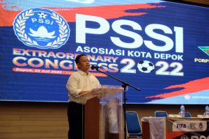 depoknet.com – Sekretaris Daerah (Sekda) Kota Depok Supian Suri,terus mendukung Askot PSSI Depok agar dapat terus mengukir prestasi terbaik untuk Kota Depok diberbagai skala. Hal ini dikatakannya saat menghadiri kegiatan Kongres Luar Biasa (KLB) yang digelar Asosiasi Kota (Askot) PSSI Kota Depok di lantai 10, Gedung Dibaleka 2, Sabtu (23/07/22).