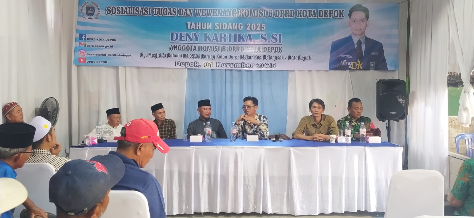 depoknet.com – Anggota Komisi B Dewan Perwakilan Rakyat Daerah (DPRD) Kota Depok dari Partai Amanat Nasional (PAN), Deny Kartika, memaparkan dua isu utama dalam kegiatan Sosialisasi Komunikasi (Soskom)di RT 05 RW 06, Parung Kulon, Kelurahan Duren Mekar, Kecamatan Bojongsari.