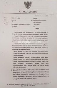 Surat persetujuan Walikota Depok perihal persetujuan pemusnahan peralatan dan mesin itu diterbitkan 2 November 2018 dengan nomor surat 953/436-BKD ditujukan kepada Kepala Dinas Kominfo kota Depok.
