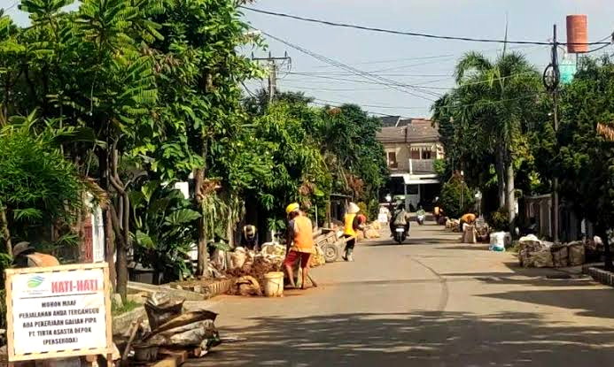 DEPOKNET – PT Tirta Asasta Depok (Perseroda) tengah melakukan revitalisasi Pipa Jaringan Distribusi Utama (PJDU) di wilayah Pondok Duta 1 dan 2, Kelurahan Tugu, Kecamatan Cimanggis.