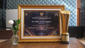 Penghargaan tersebut diterima Direktur Utama PT. Tirta Asasta Depok (Perseroda), M. Olik Abdul Holik, A.K. M.Si, yang diserahkan oleh Direktur Jenderal Bina Keuangan Daerah, Kementerian Dalam Negeri DR. Agus Fatoni yang mewakili Menteri Dalam Negeri Tito Karnavian.