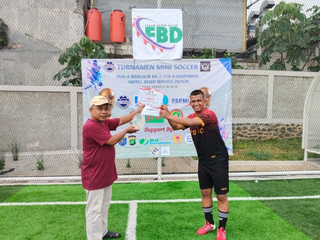 DEPOKNET.COM – Turnamen mini soccer antar serikat pekerja se-Kota Depok kembali sukses diselenggarakan. Acara yang merupakan turnamen kedua yang diadakan oleh FSB-Kamiparho ini dimenangkan oleh tim dari Serikat Pekerja Parkes Reformasi, menggeser juara bertahan sebelumnya, SP LEM.
