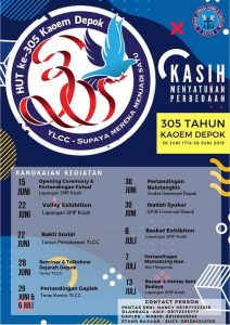 DEPOKNET – Memperingati Hari Ulang Tahun Kaoem Depok ke 305 tahun yang jatuh pada tanggal 28 Juni 2019, Yayasan Lembaga Cornelis Chastelein (YLCC) melakukan serangkaian kegiatan guna mengingat dan terus mempertahankan nilai-nilai luhur dan semangat persaudaraan dalam komunitas Kaoem Depok.
